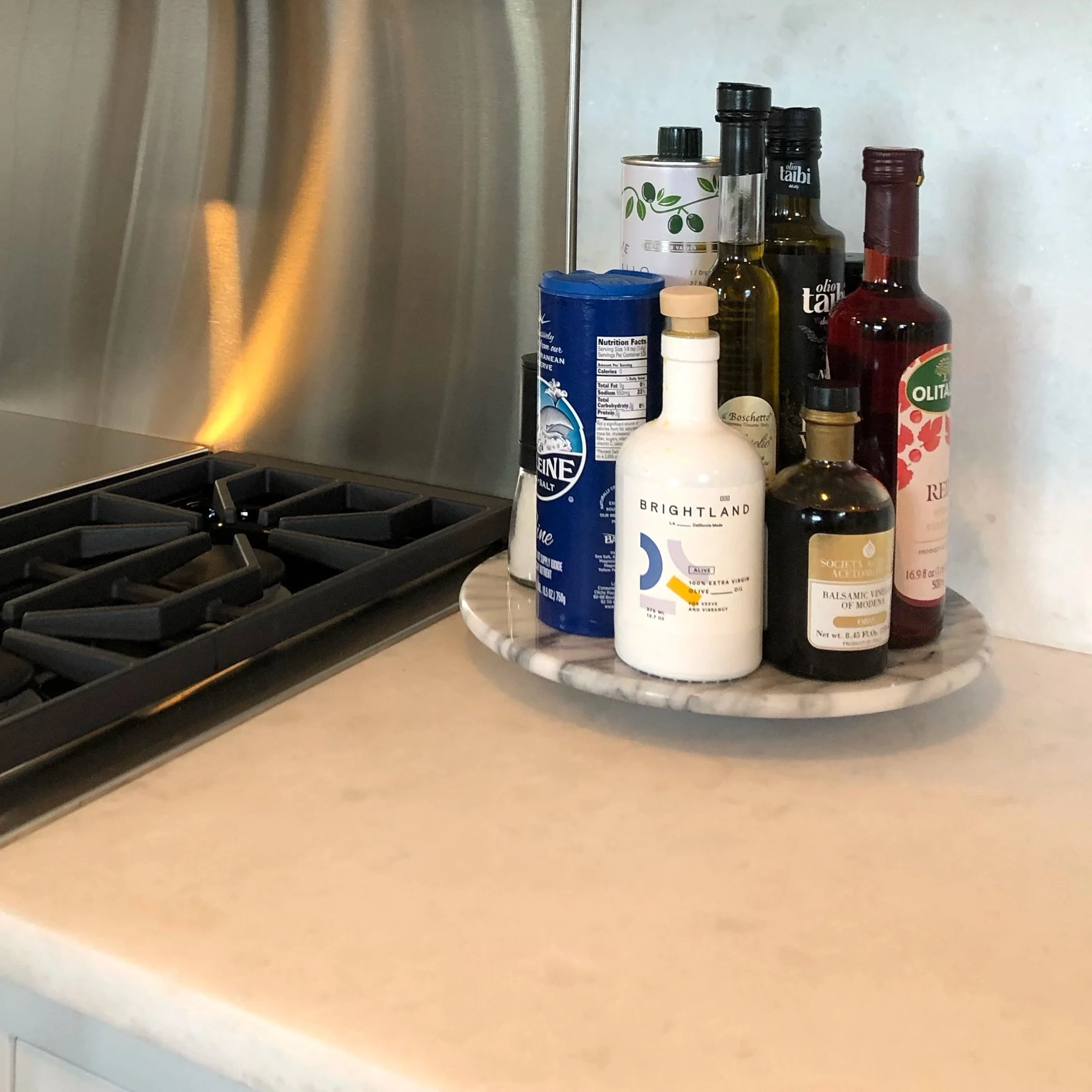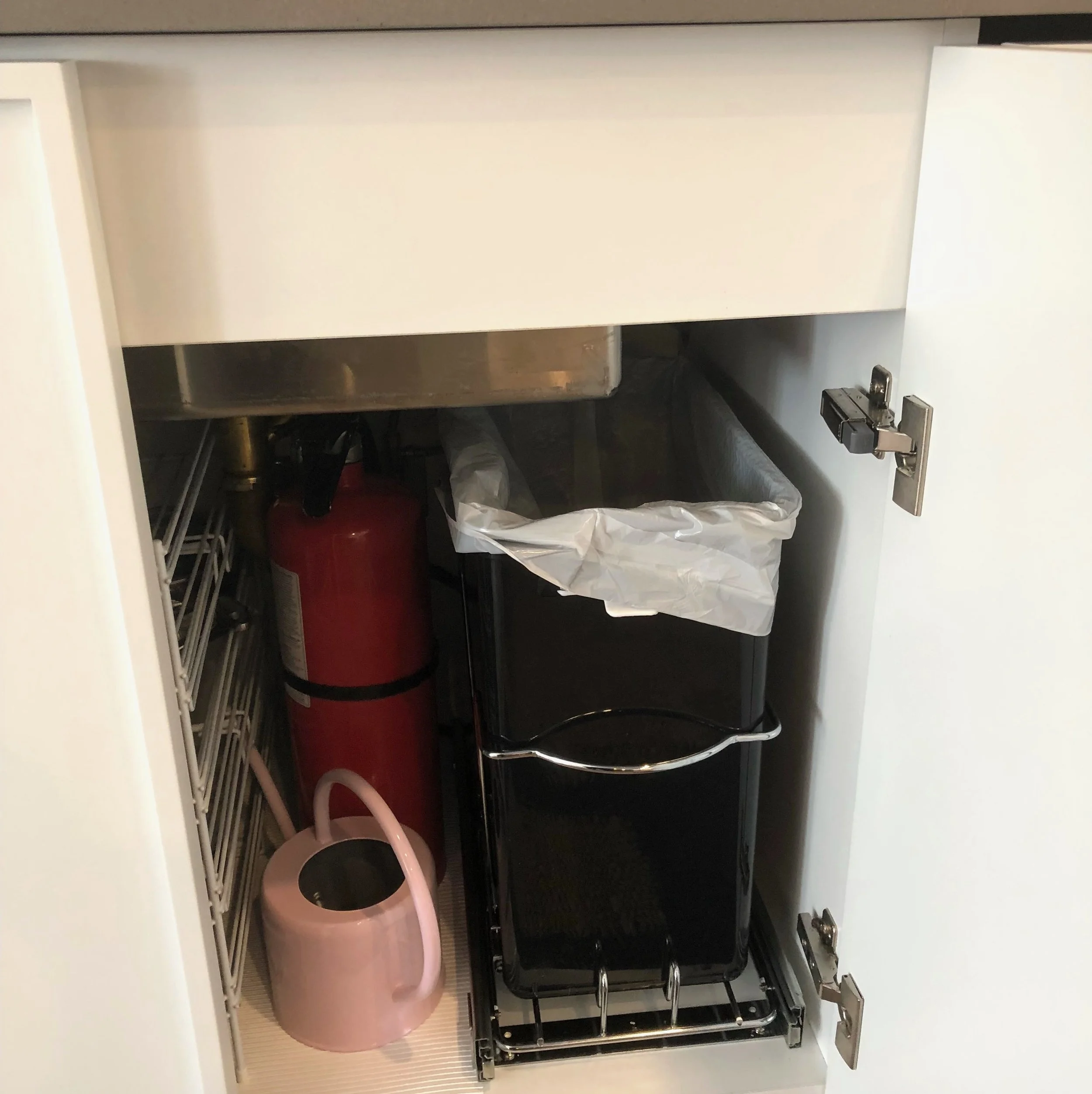Instant dry sink caddy. Especially helpful to keep this wooden kitchen island looking beautiful for years to come. Great for marble countertops, too.